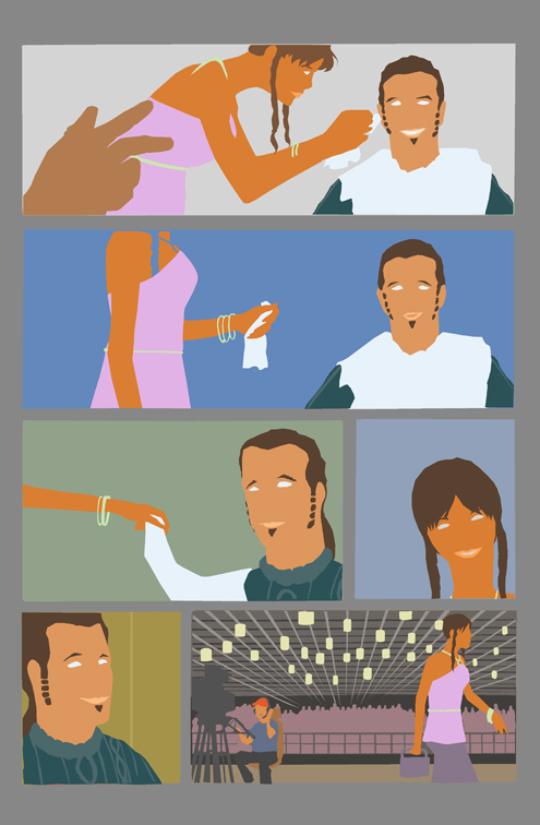 Finally, last time around, we showed off Gilbert’s pencils of the script pages I’d written, which showed the changes that sometimes happen. Page two ended up with six panels instead of the four written. This time out, we have the flat colors, which were done by Daniel Blodgett (owner of Gett Comics). The flat colors are usually done by someone so that the color artist has an easier time making the finished product. Next time around, I’ll show you Brandon’s finished rendering before posting the final version that will see print!